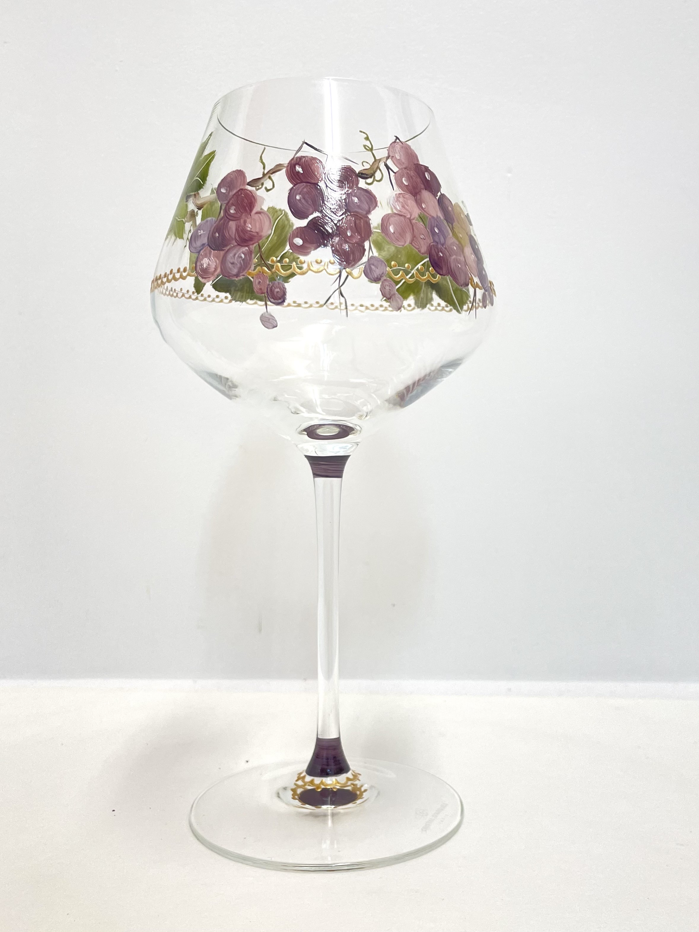 Ces verres à vin et flûtes à champagne sont peints à la main d’un délicat décor de grappe de raisin, pour apporter une touche d’harmonie et d’élégance à votre table.
