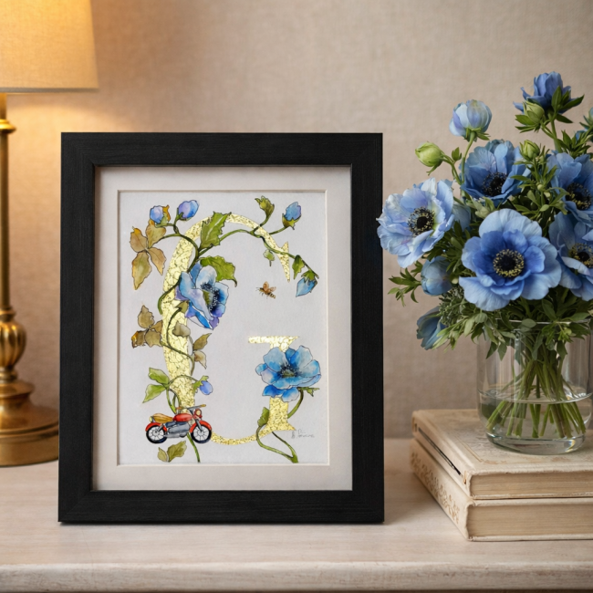 Au delà de la lettre, je vous propose d'intégrer au tableau un élement symbolique et personnel qui reflète la vie, la passion ou les goûts de la personne à laquelle il est destiné. Je vous invite à me contacter afin d'en discuter ensemble
