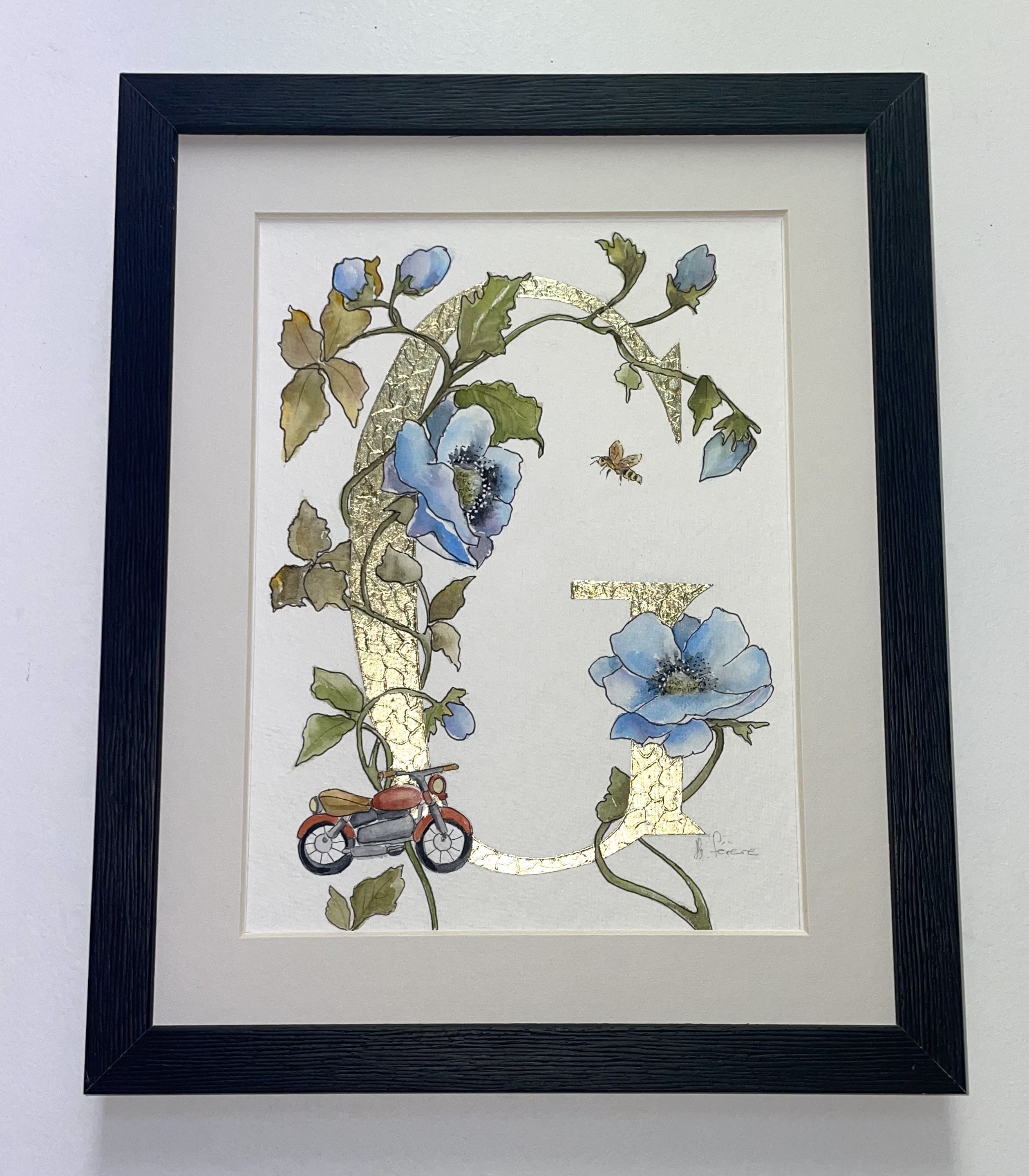 Au delà de la lettre, je vous propose d'intégrer au tableau un élement symbolique et personnel qui reflète la vie, la passion ou les goûts de la personne à laquelle elle est destinée. Je vous invite à me contacter afin d'en discuter ensemble.
